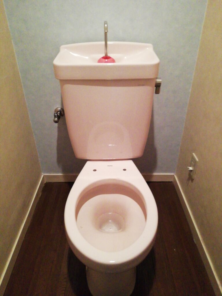 トイレタンク、便器と統一されたピンクで前のウォシュレットより少しスマートになりました(^o^)