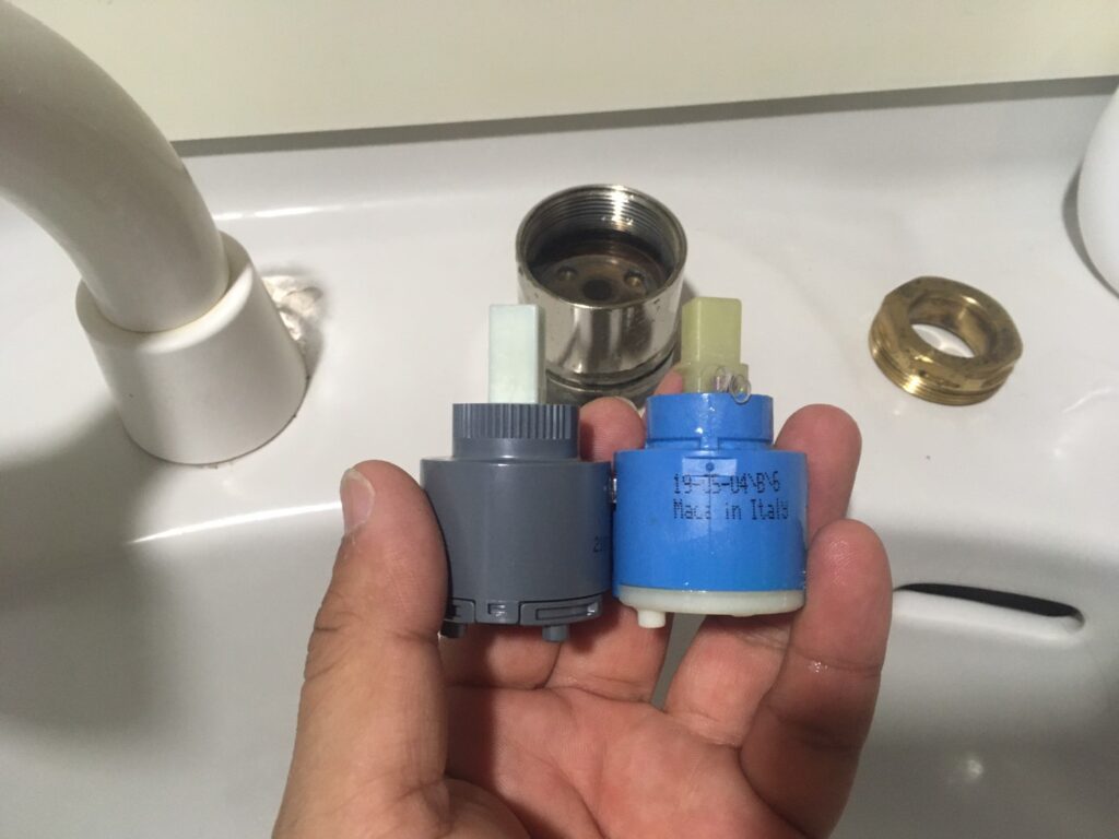 レバー式の水栓にはこのような部品が劣化してくると 水の止まりが悪くなってきます。 今回は 水が止まらないというご依頼で 部品の取り替えをさせていただきました。