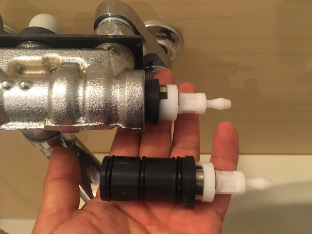 部材交換を行いましたが改善出来なかったため蛇口本体の交換になりました。