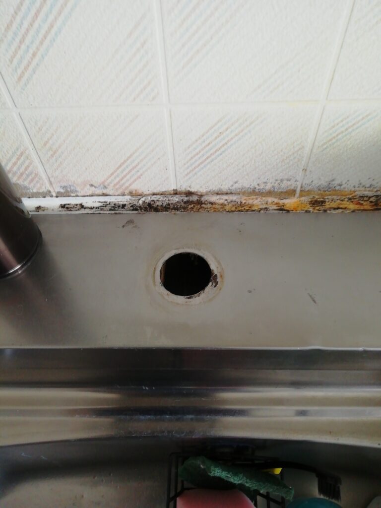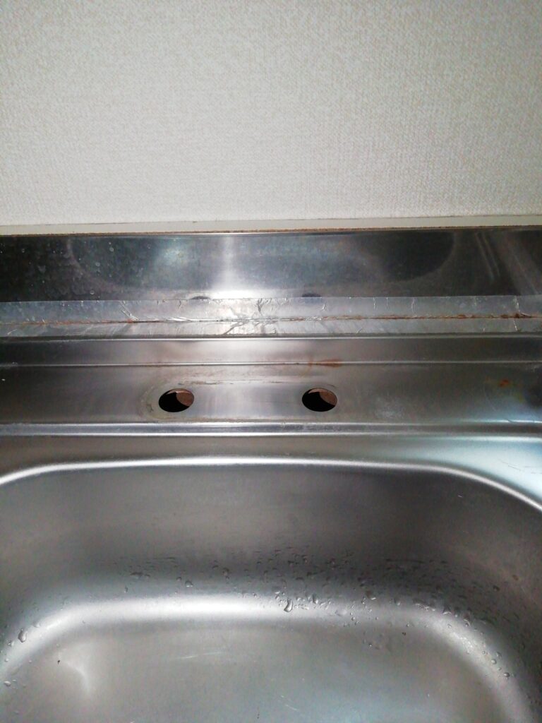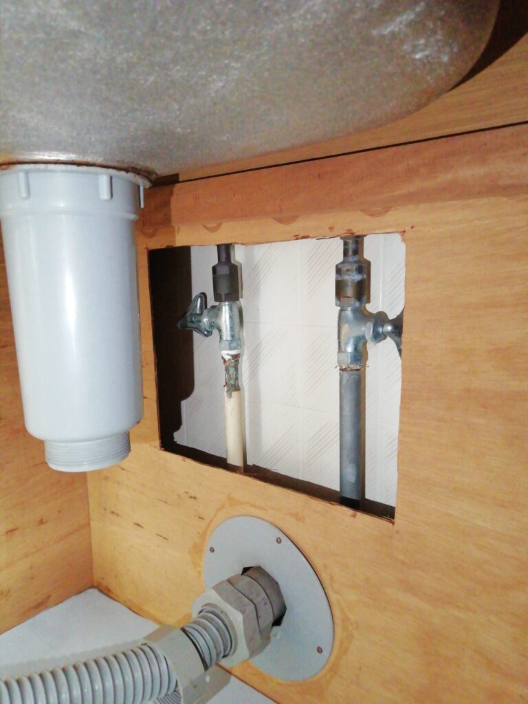 まず台所シンク下に開口部が無い為、開口作業を行なって蛇口を外します。