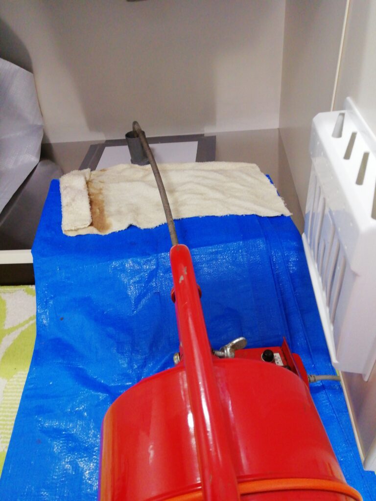 そして今回も排水管に詰まりがあるようなのでトーラー作業というワイヤーがぐるぐる回りながら排水管を進んでいく機械を使い詰まり除去を行いました!