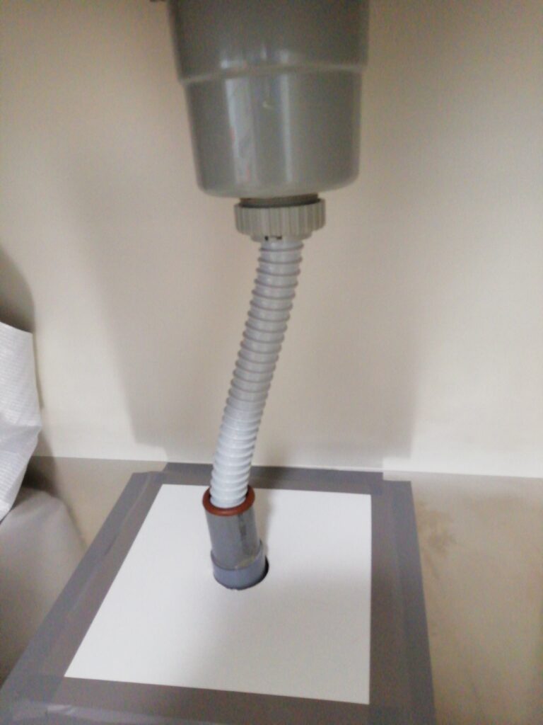 排水管と蛇腹ホース接続部に防臭対策がされていなかった為、